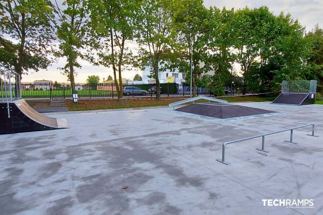 Prvky skatepark: Quarter Pipe Bank Ramp Pyramida 3 Funbox s plošinou Zábradlí 2/2 Grindbox 1 Grindbox 2 Rovné zábradlí
