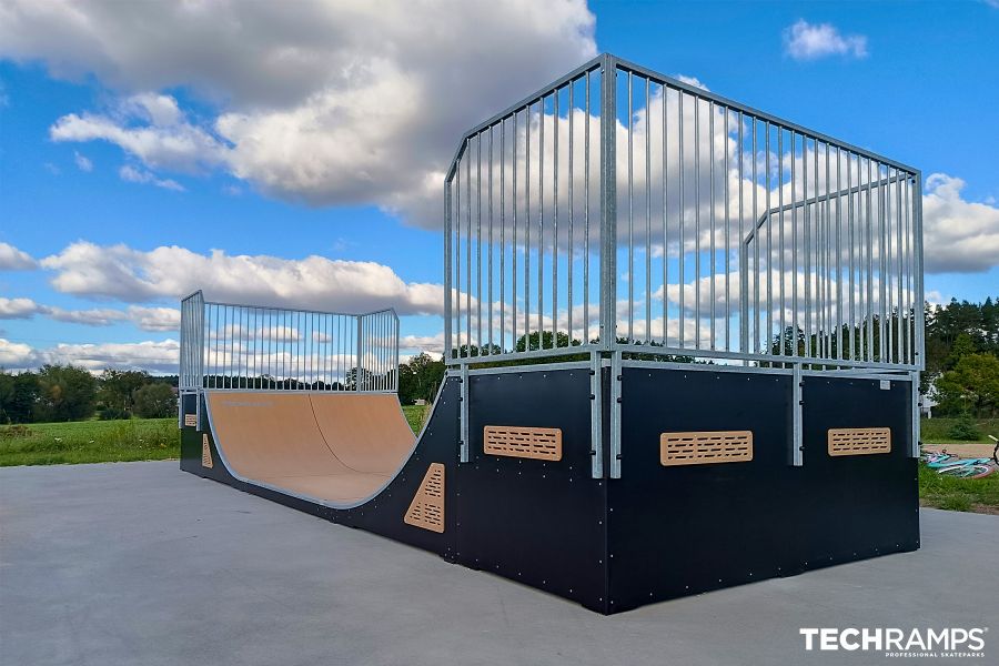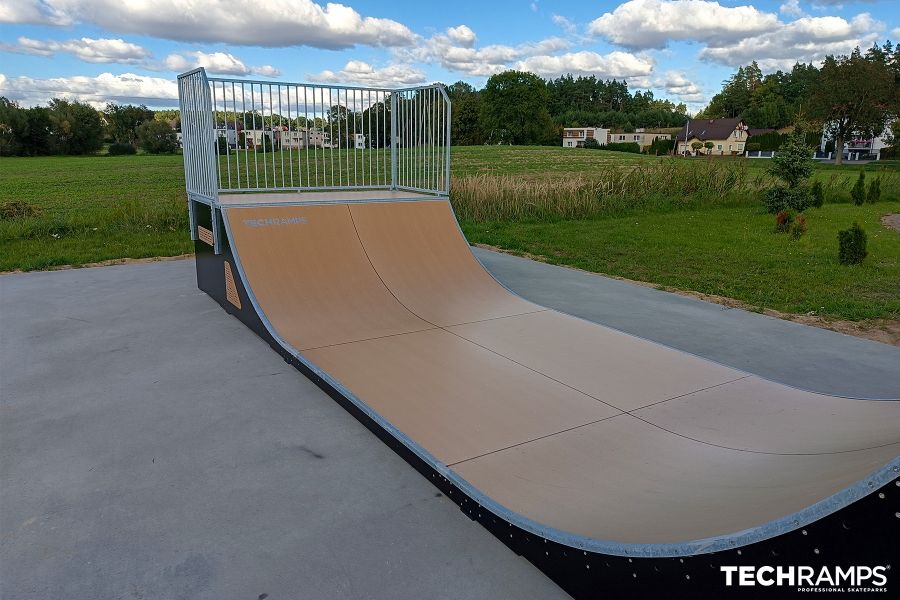 Miniramp in Morzeszczyn is a compact PRESTIGE modular element designed for transition type riding. The facility allows training of smooth transitions and basic tricks on skateboard, rollerblades and scooters. The structure is made of laminated plywood with a RampLine mat surface, ensuring durability and good grip while riding. Thanks to its small size, the miniramp provides an easily accessible place for daily training and recreation.