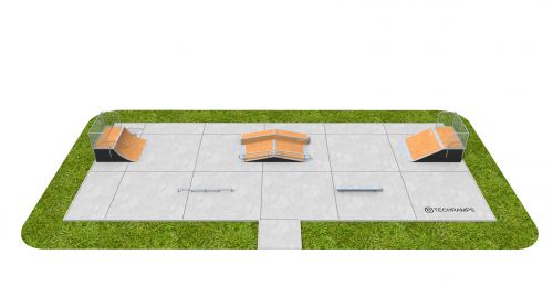 Campione di skatepark modulare PSM04 Superficie 24x13,2m Tecnologia: Prestiż (variante Prestiż rivestita con Rampline opaco chiaro spesso 6 mm) &nb...