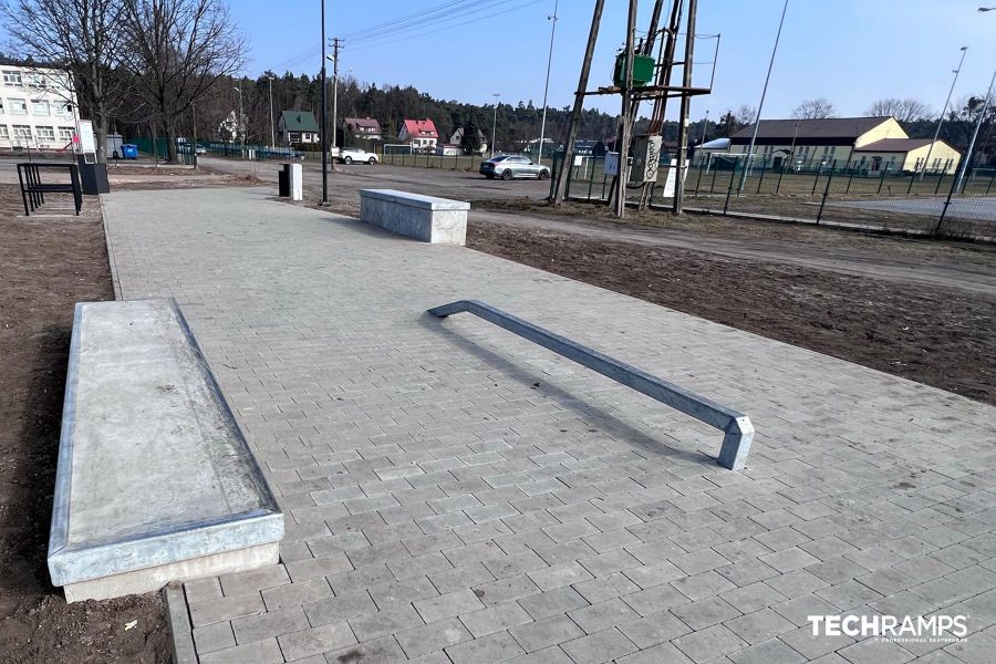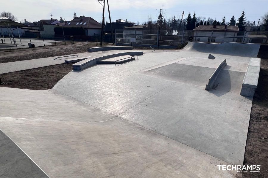 Betonowy skatepark o powierzchni 300 m2, został wyposażony w przeszkody, gdzie również poczatkujący mogą spróbować swoich sił w jeździe.