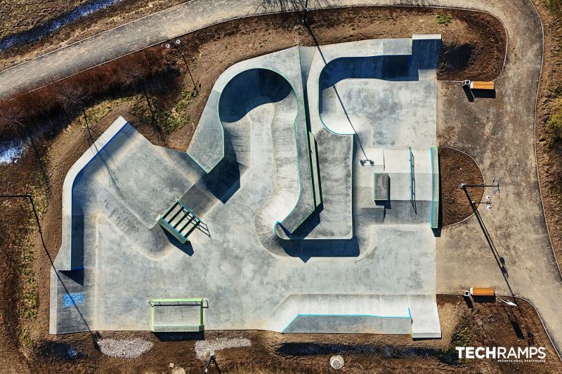 Lo skatepark di Zabierzów è una struttura di circa 735 m², progettata a forma di trapezio, che offre un'ampia gamma di opportunità per il tempo libero attivo. Lo spazio è stato suddiviso in quattro sezioni principali per adattarsi ai diversi livelli di abilità e alle preferenze degli utenti.