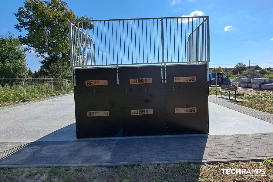 Elementi skatepark: Quarter Pipe + Bank Ramp 416x488x150 Jumpbox 521x244x100/106 Spin 307x183x100 Roll-in 470x366x190 Grindbox 2 400x60x50