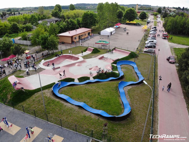 Elementi skatepark: - Quarter pipe - Scala con grindbox - Corrimano n. 1 - Gap con grindbox - Vulcano - Grindbox n. 3 - Corrimano n. 2 - Rampa di riva - Grindbox n. 4 - Quarter pipe - Funbox per il salto - Bowl - Wave - Pumptrack modulare.